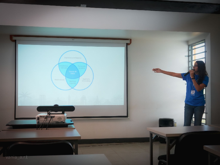 Y cuando el evento pedía su cierre, apareció nuevamente Iván Castañeda para contar su propia historia, El trainee que pintó con datos y soño con código: El viaje de quien se atrevió a soñar con máquinas. No fue una charla más, fue un cuento fantástico. Narró su experiencia como si abriera un libro encantado, donde cada capítulo estaba tejido con aprendizajes, caídas, victorias y magia. La comunidad escuchaba en silencio, como quien se sumerge en un relato del que no quiere escapar.